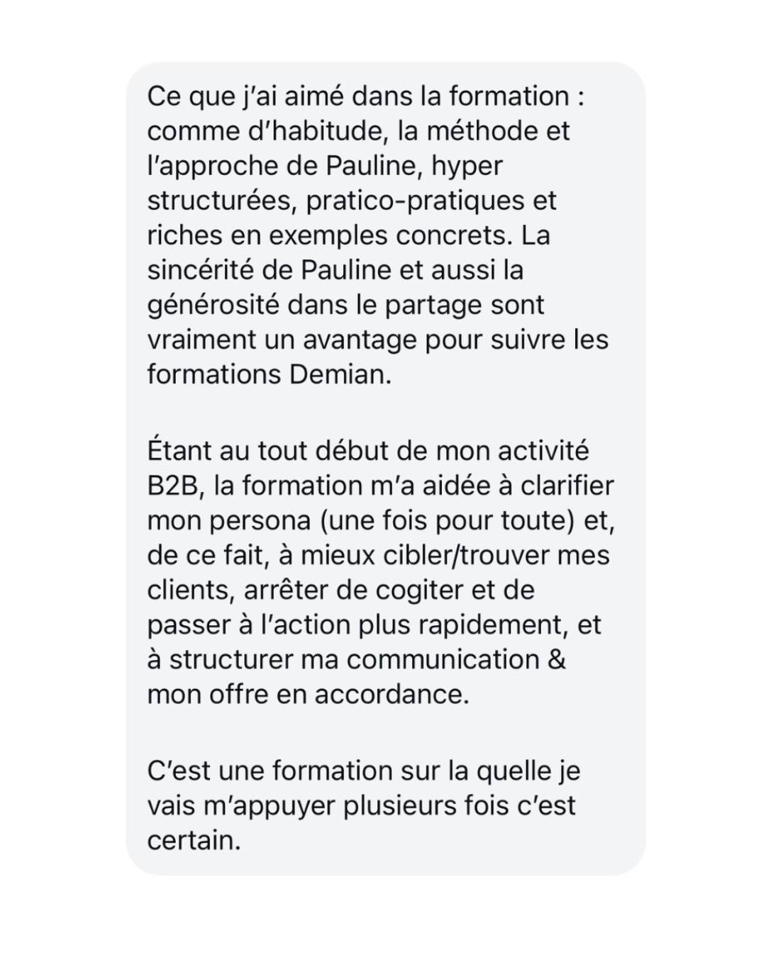 Si vous êtes salarié, vous pouvez faire participer votre entreprise à l’achat de cette formation. Nous pouvons établir un devis pour vous. Il suffit de contacter hello@paulinelaigneau.com ! Pensez-y ;)