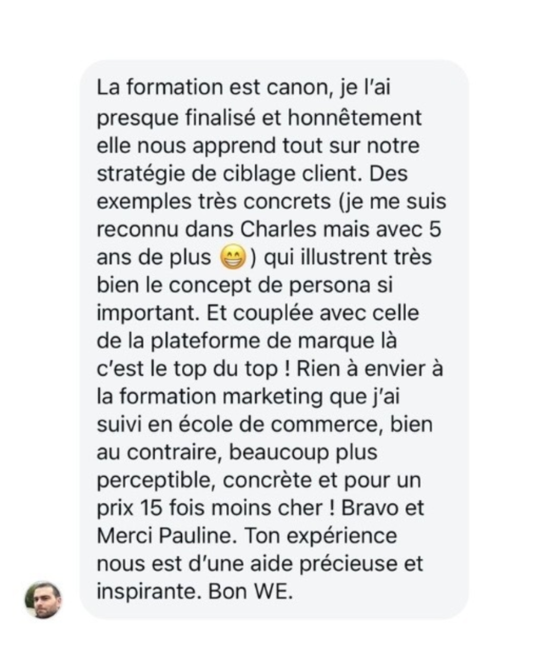 Oui aussi. Vous apprendrez à construire un persona à partir de votre intuition (je vous explique comment faire !) de votre expérience et de votre réseau. Ensuite, je vous montre comment l’affiner avec le temps et obtenir des premiers résultats rapidement.