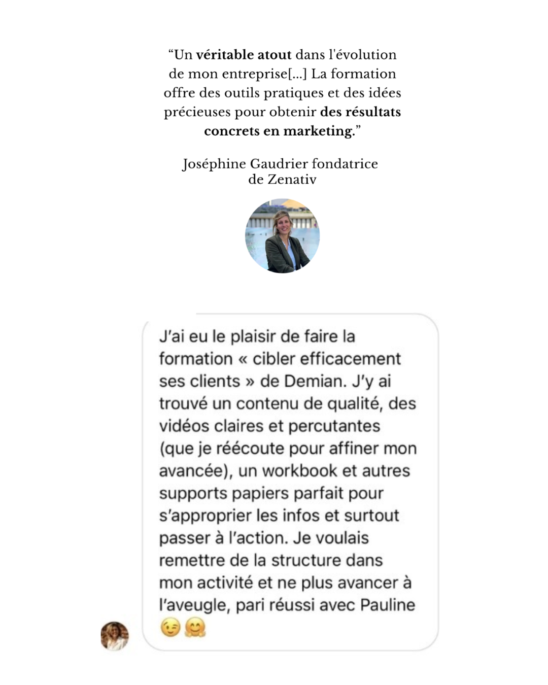 Franchement, qu’avez-vous à perdre ? Même si cette formation ne vous permet “que” de clarifier votre client idéal, d’arrêter de vous disperser ou de lancer une première action vraiment efficace, l’impact sur votre acquisition (et votre sérénité) sera immédiat.